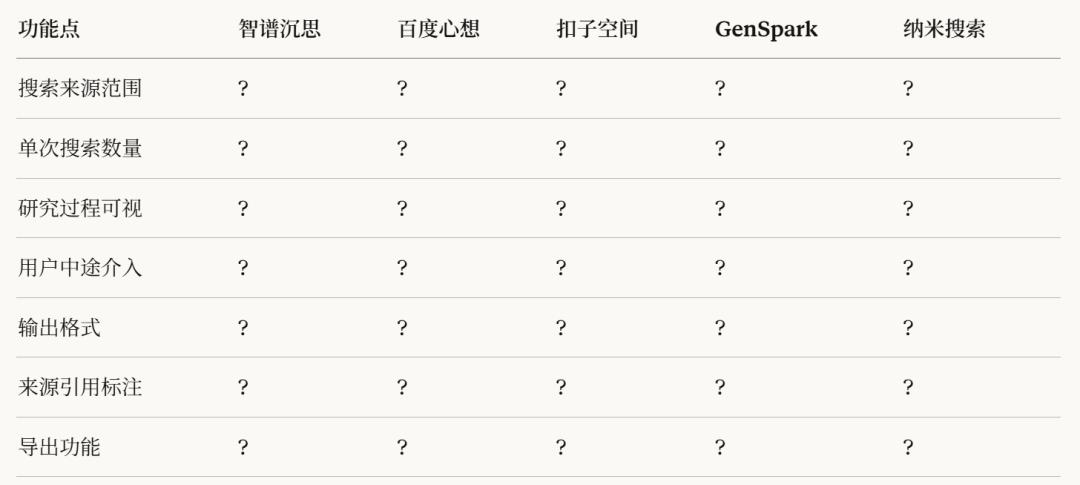 这些产品都有独立的Deep Research或类似功能,和我们直接竞争: