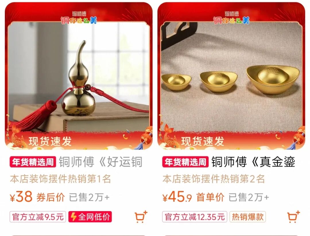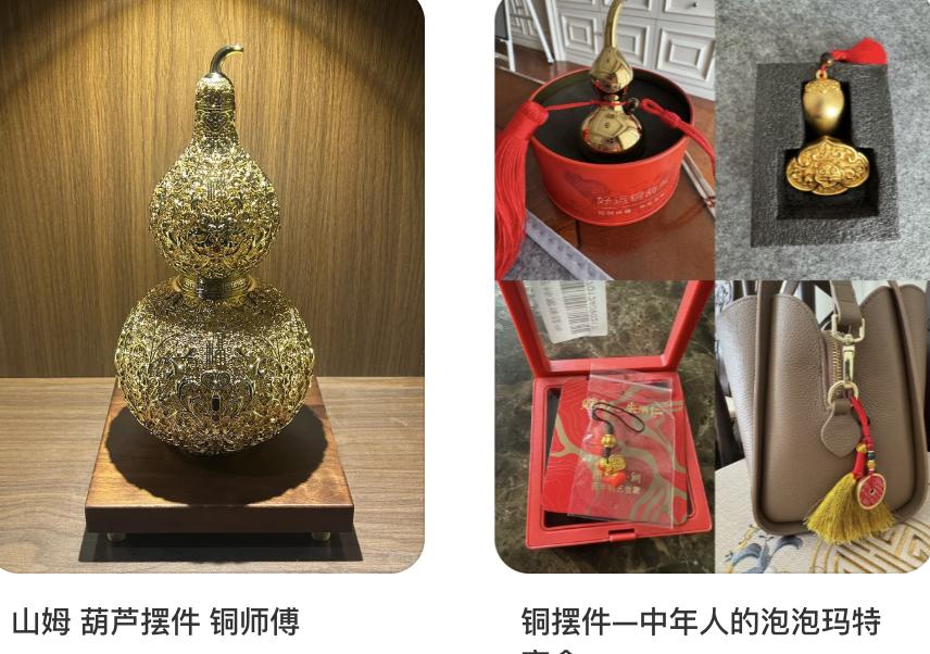 绕了一大圈,最后能让中年男人们点开支付页面欣然下单的,还是各种版本的铜葫芦、各种大小的铜元宝。