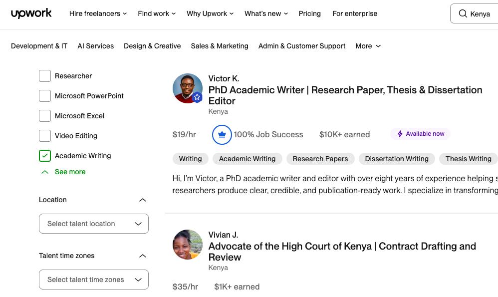 全球自由职业者网站upwork上专门开辟了“academic writing”的专栏