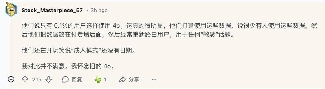 但消息一出,考虑到 GPT-4o 的部分用户群体及其使用场景,这个消息还是在 X、Reddit 等海外社交平台上引发不少讨论。