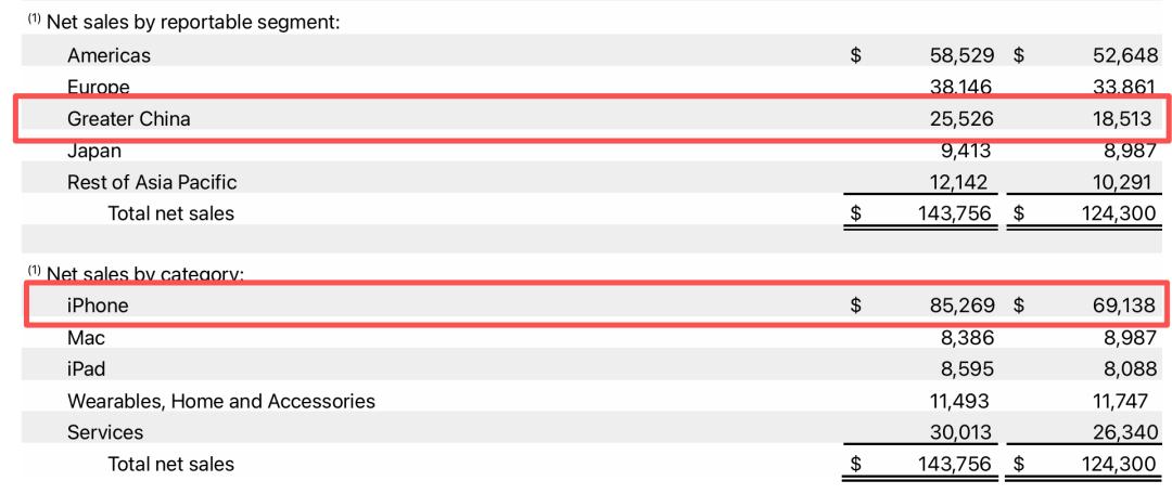 ▲苹果大中华区营收情况、iPhone业务营收情况,来源:苹果财报