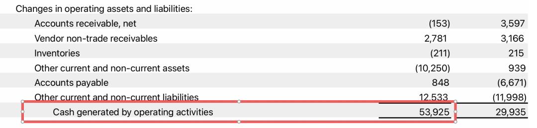 ▲苹果2026财年一季度现金流情况,来源:苹果财报