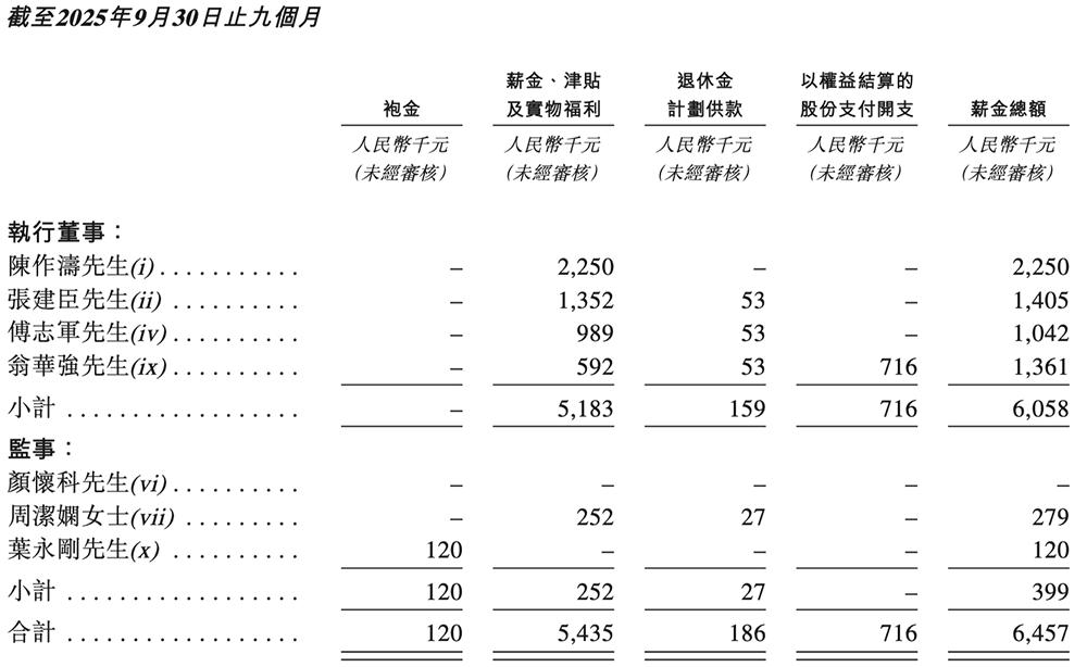 2024年及2025年1-9月,聚辰股份执行董事及监事的薪酬如下: