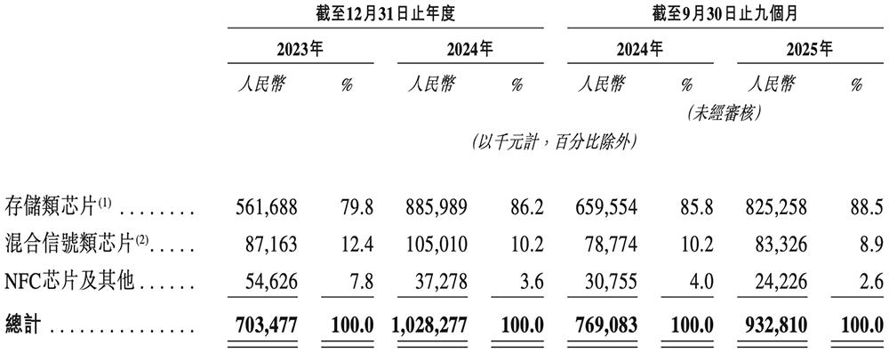 其中,存储类芯片在2023年至2025年9月底贡献了聚辰股份超8成的收入。