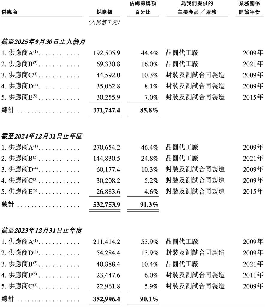 同期,聚辰股份向前五大供应商的采购额分别占其总采购额的90.1%、91.3%、85.8%。