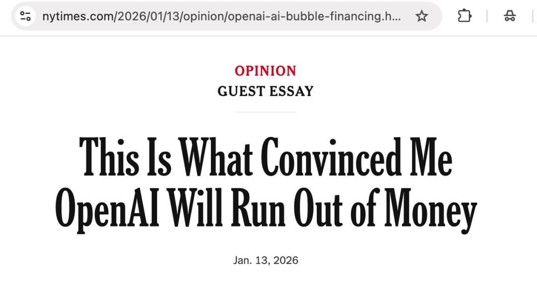 前不久「美国外交关系委员会」高级研究员、知名经济历史学家塞巴斯蒂安·马拉比 (Sebastian Mallaby) 在《纽约时报》刊登专栏文章,预测 OpenAI 可能在未来 18 个月内,也即 2027 年中左右烧光现金储备。