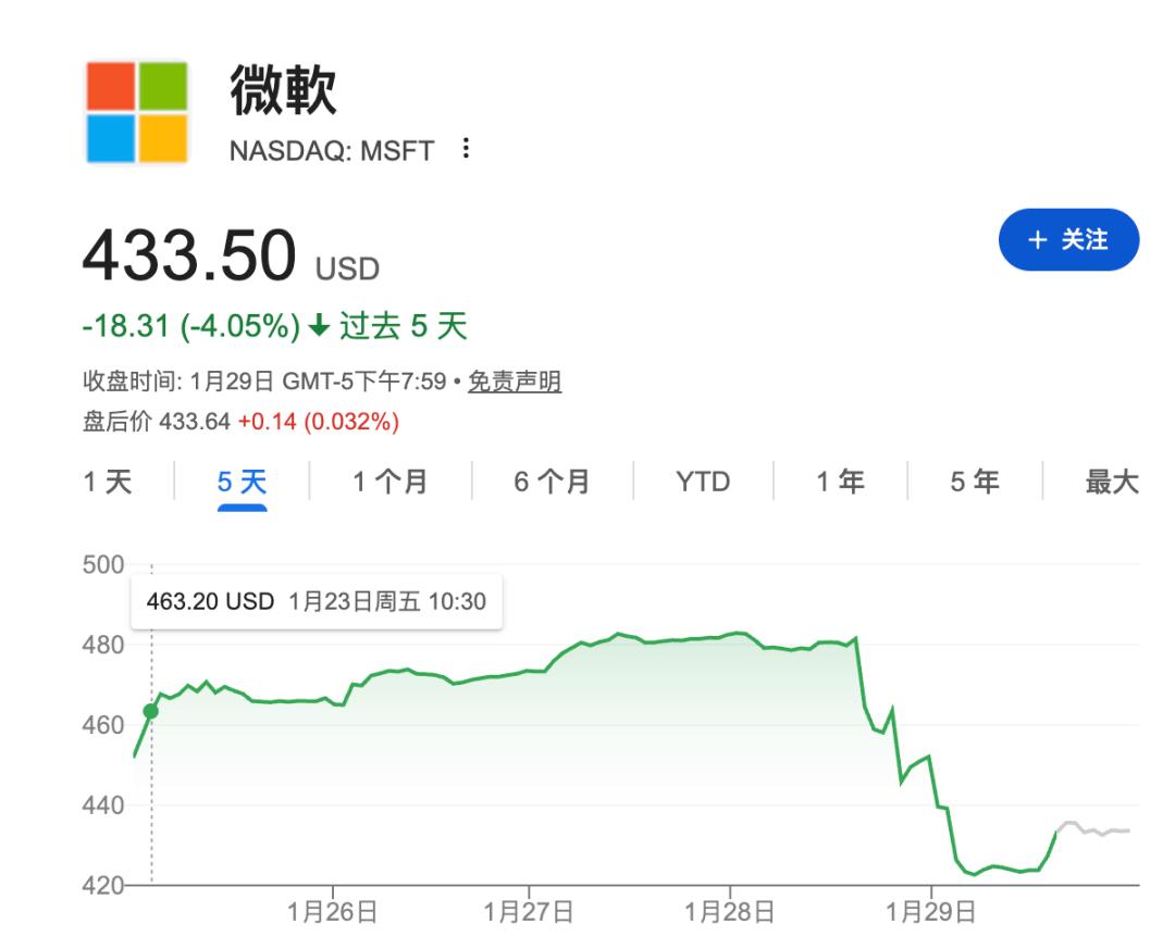 财报发出后,微软股价一度暴跌 10%。