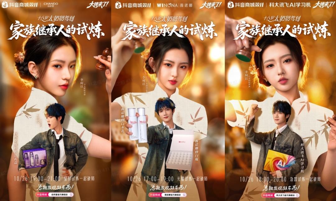 以《太奶奶》系列为例,自第一部走红后,品牌合作持续增加,花样也越来越多。《太奶奶 3》牵手2025抖音商城双11“大牌来了”活动,与科大讯飞、自然堂、薇诺娜等品牌展开合作,通过专场直播、粉丝互动助力品牌抢下大促热度。《太奶奶 4》尚未开播,已有多个品牌率先押注,除了前面提到的良品铺子小剧场外,可丽金也和剧中主演王培延合作,借抖音商城年货节契机推出专场直播、宠粉专属产品等新玩法。