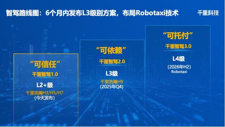 2025年6月23日,千里科技在重庆正式发布了面向L2+级的智能辅助驾驶解决方案——千里智驾1.0,并公布了面向 L3级、L4级的智能驾驶产品路线图。