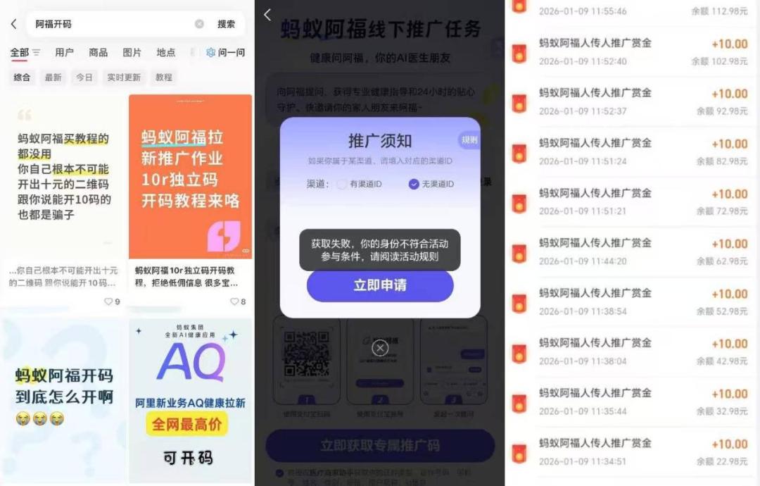 “其中只有少数人能拿到高返现码,大多数其实是被收割的‘韭菜’。”该服务商还表示,阿福地推局面形成现在这样,其实是一种“迫不得已”。原本这个专属码是线下地推的一种专属码。