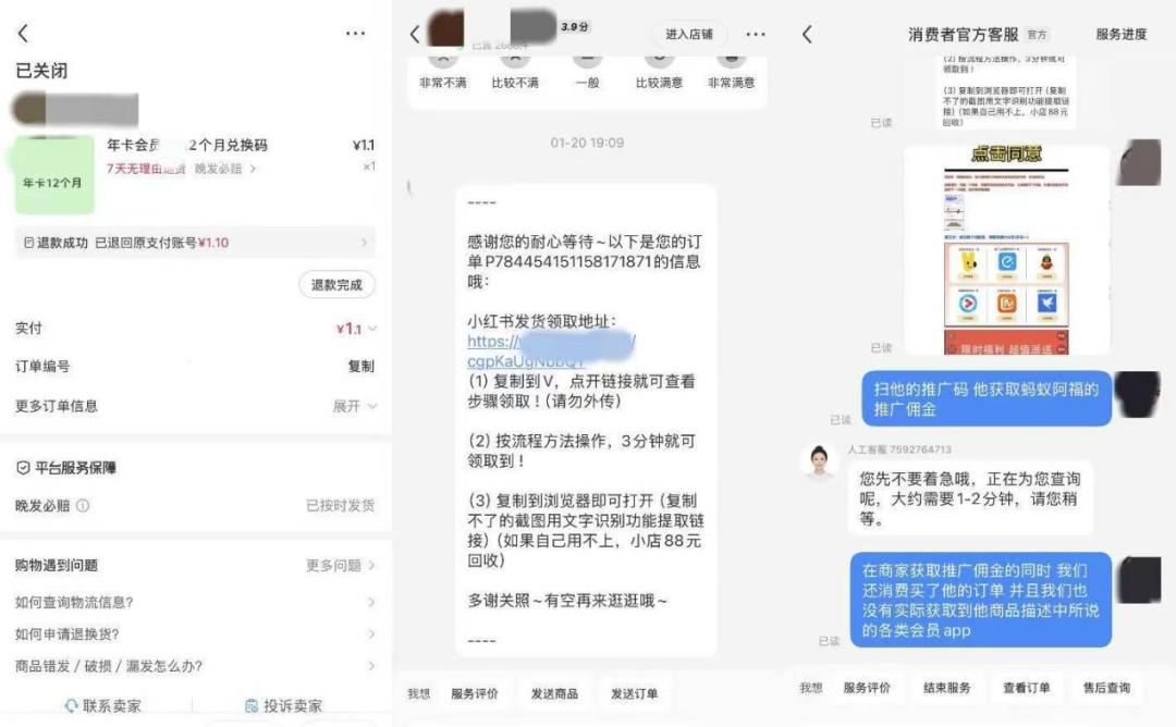 “可以说我有点图便宜,但之前这么买都没问题,这是第一次被骗。”他在小红书看到一个标价4元的“网盘一天会员”购买链接,点击后价格自动变为0.01元。他以为是平台优惠,便付了款。随后客服发来一份“会员领取教程”。