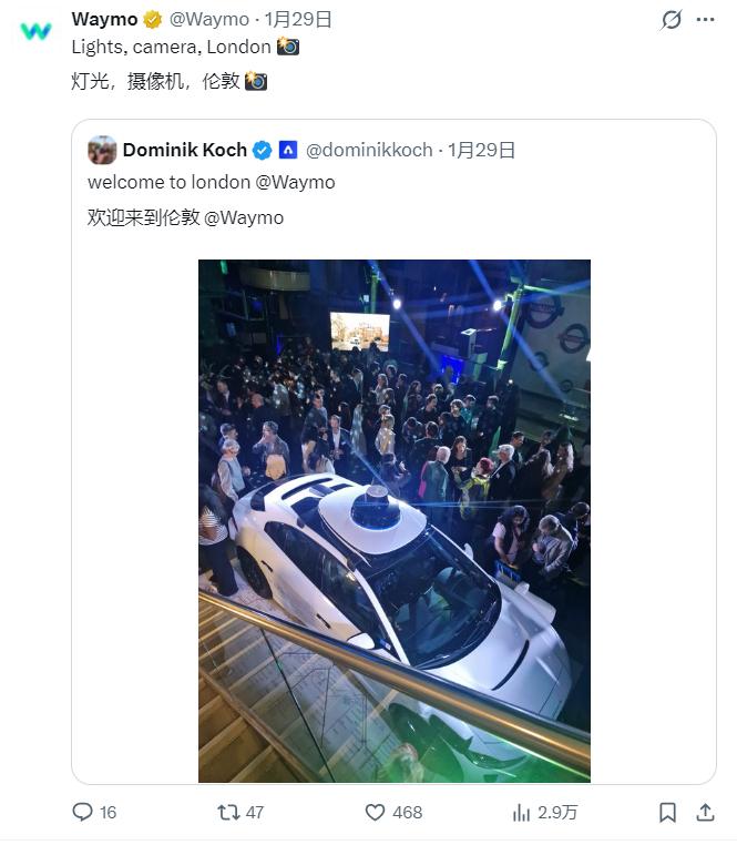 也是在这周,Waymo宣布,今年第四季度将在伦敦推出Robotaxi服务。
