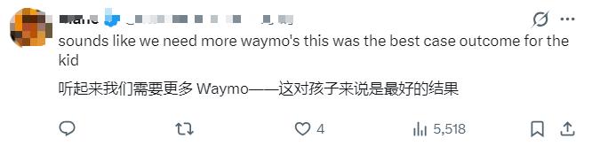 事故发生后,很多网友认为,Waymo确实比人类驾驶做得更好,能尽可能减少或避免事故带来的伤害。