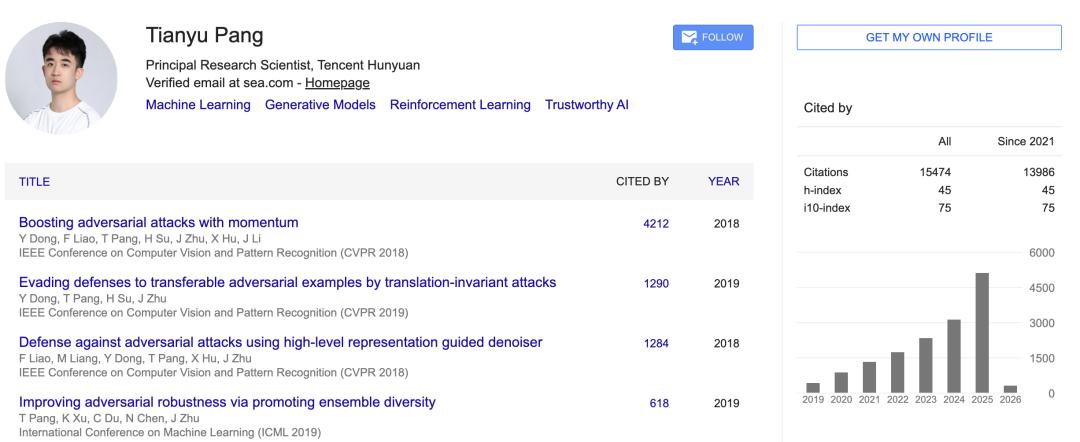 据报道,庞天宇大三才接触AI,一上手的研究就进入了当时AI的「无人区」——AI对抗鲁棒性研究。