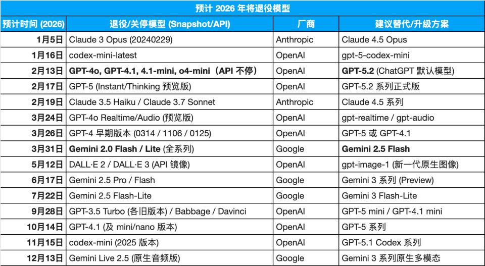 根据公开信息来看,今年还会有以下模型陆续退役: