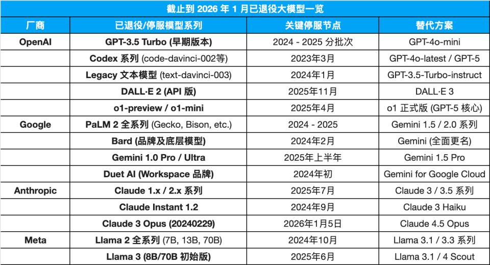自 ChatGPT 火爆以来,已经有很多曾经明星的模型退役: