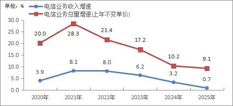 0.7%,这是中国通信业在2025年交出的电信业务营收增速成绩单。
