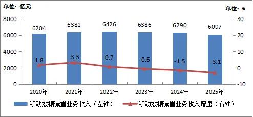2020—2025年移动数据流量业务收入情况。图片来源:工信部官网
