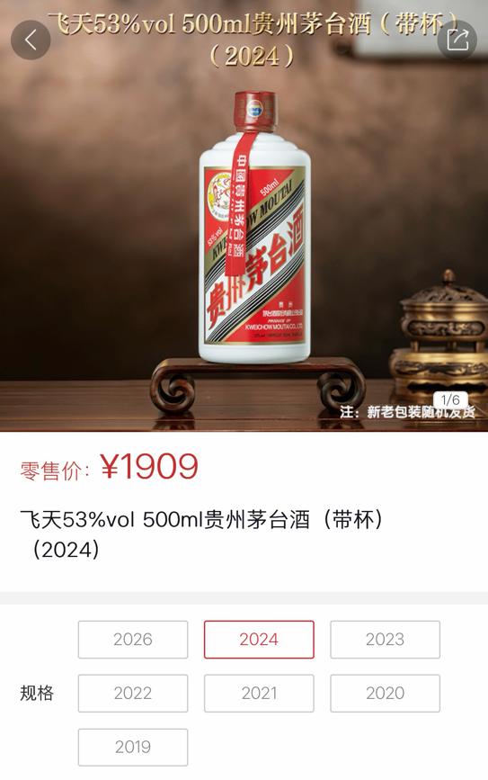 目前,i茅台上,2024年的飞天茅台价值1909元,也即是说,一瓶1499的飞天茅台,两年后即能升值410元。