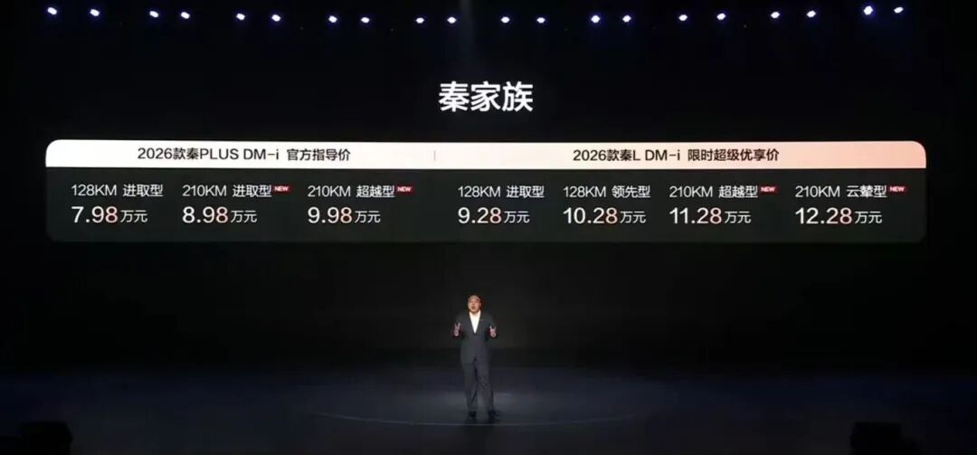 针对旗下的秦PLUS、秦L、海豹05、海豹06以及宋Pro在内诸多走量选手的DM-i版本,全部加推大电池。以秦PLUS为例,升级后纯电续航达到210公里,远超同级别竞争对手,并且售价仅需8.98万元。
