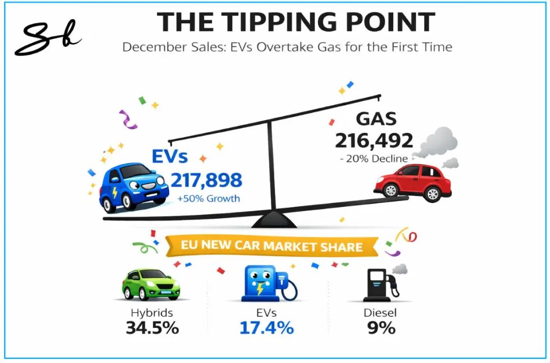 尽管如此,12月的数据已传递出清晰的信号:在欧洲,电动汽车已不再是未来出行的愿景,而是正在发生的现实。