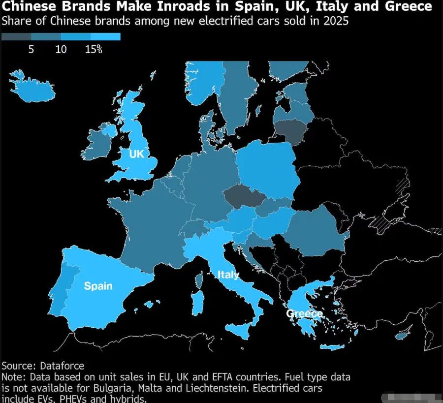 “中国汽车在南欧的快速普及令人瞩目,”Dataforce分析师朱利安·利辛格表示,“我们原本了解这些市场消费者在品牌选择上更为灵活,但在电动车领域出现如此迅速的趋势转变,仍然超出预期。”