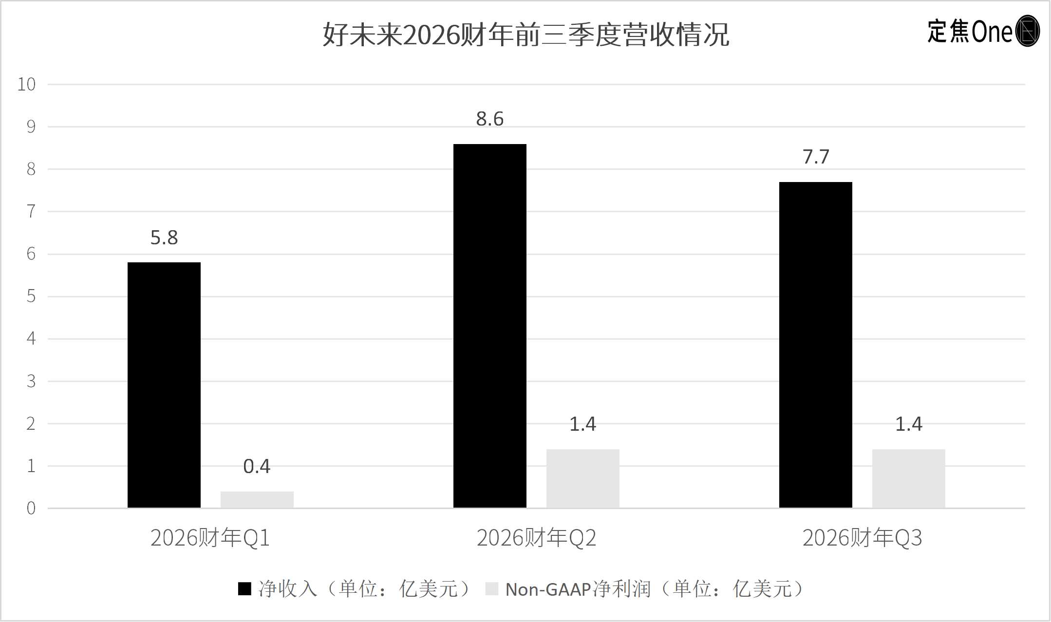 1月29日,好未来公布2026财年三季度(对应自然年2025年9月1日至2025年11月30日)财报。财报显示,第三季度收入为7.7亿美元,同比增幅27%,Non-GAAP净利润(以下净利润均为Non-GAAP口径)1.4亿美元,同比增长266.6%;前三季度累计营收为22.1亿美元,同比增幅34.5%,Non-GAAP净利润3.2亿美元,同比增长124%。