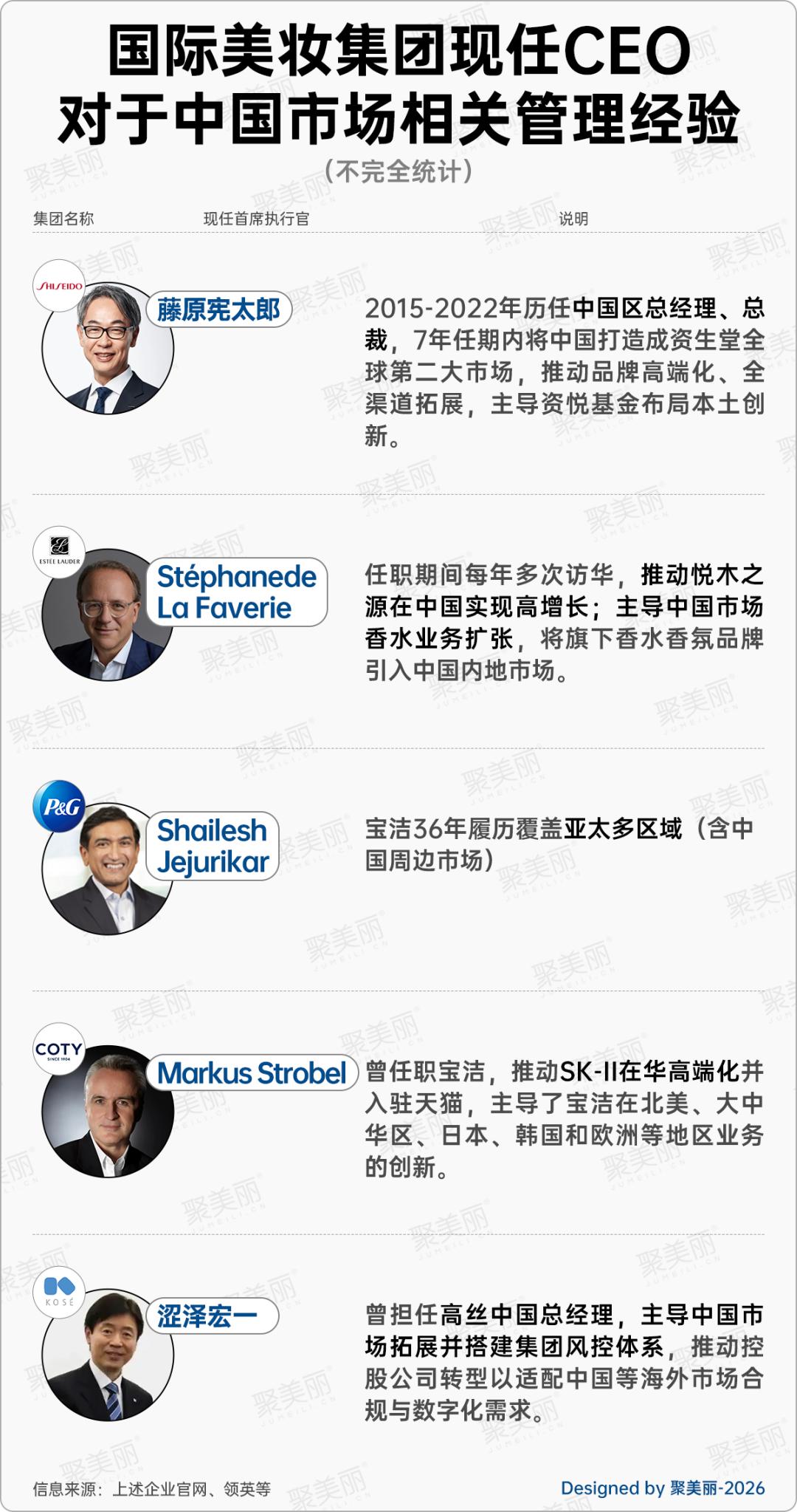 值得注意的是,上述这些无论是外部空降还是内部提升的CEO,多数有着中国市场管理运营的相关经验。其中资生堂、科蒂、高丝现任一把手均深耕中国市场多年,并直接负责过中国业务。