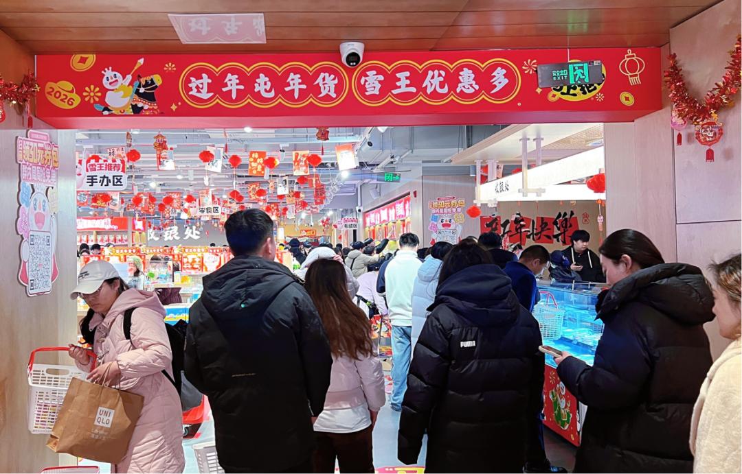 蜜雪冰城旗舰店还挂起红色的“雪王年货节”装饰,过年氛围感拉满。
