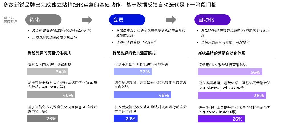 多数品牌已完成独立站体验的系统性升级,通过数据反馈持续优化页面与转化路径,并逐步建立起以数据驱动、数据分级、数据决策为核心的运营体系。在此基础上,品牌的数智化能力正从单点优化,向会员精细化运营与营销自动化协同演进,竞争焦点不再是“是否数字化”,而是“能否用数据持续放大运营效率与用户价值”。