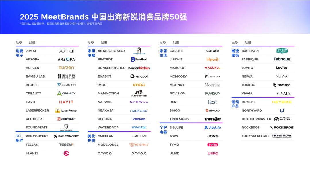 本次出海榜单50强的评选,更聚焦品牌是否具备长期成长的结构性能力,而并非单一销售指标。