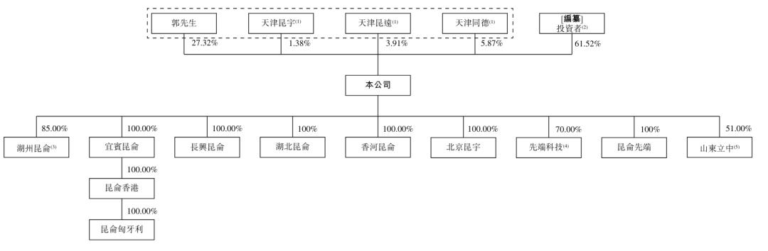 IPO前,郭营军作为天津同德、天津昆远及天津昆宇普通合伙人的身份,郭营军、天津同德、天津昆远及天津昆宇组成单一最大股东集团,其合共持有公司已发行股本总数的约38.48%。
