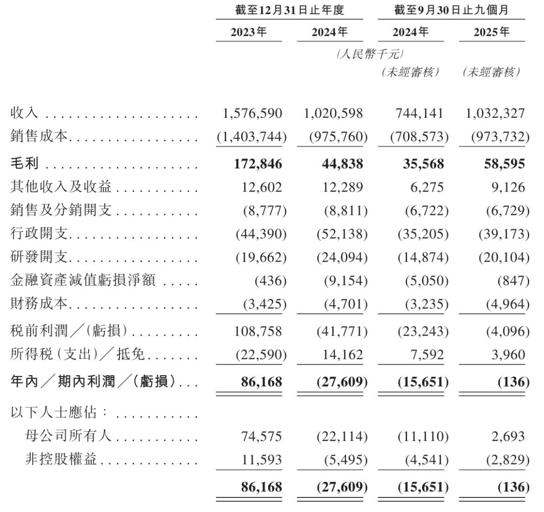 招股书显示,昆仑新能源2023年、2024年营收分别为15.77亿元、10.2亿元;毛利分别为1.73亿、4484万;期内利润分别为8617万、-2761万元;2025年前9个月营收为10.32亿,毛利为5860万,期内亏损为13.6万元。