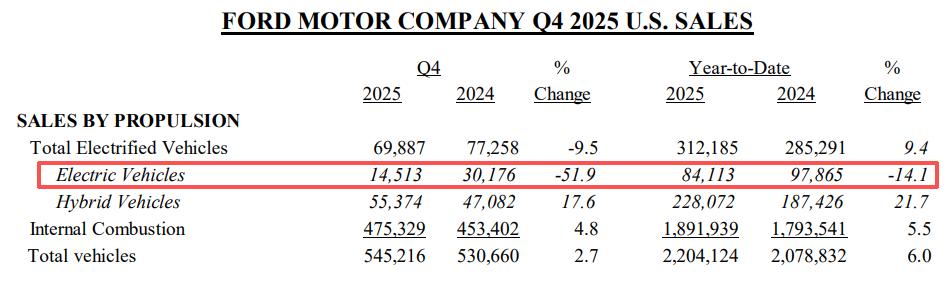 特别是在大本营美国市场,补贴退坡给电车带来的“打击”,席卷美国车企。2025年,福特在美国市场的销量为220万辆,创2019年来的最好成绩。