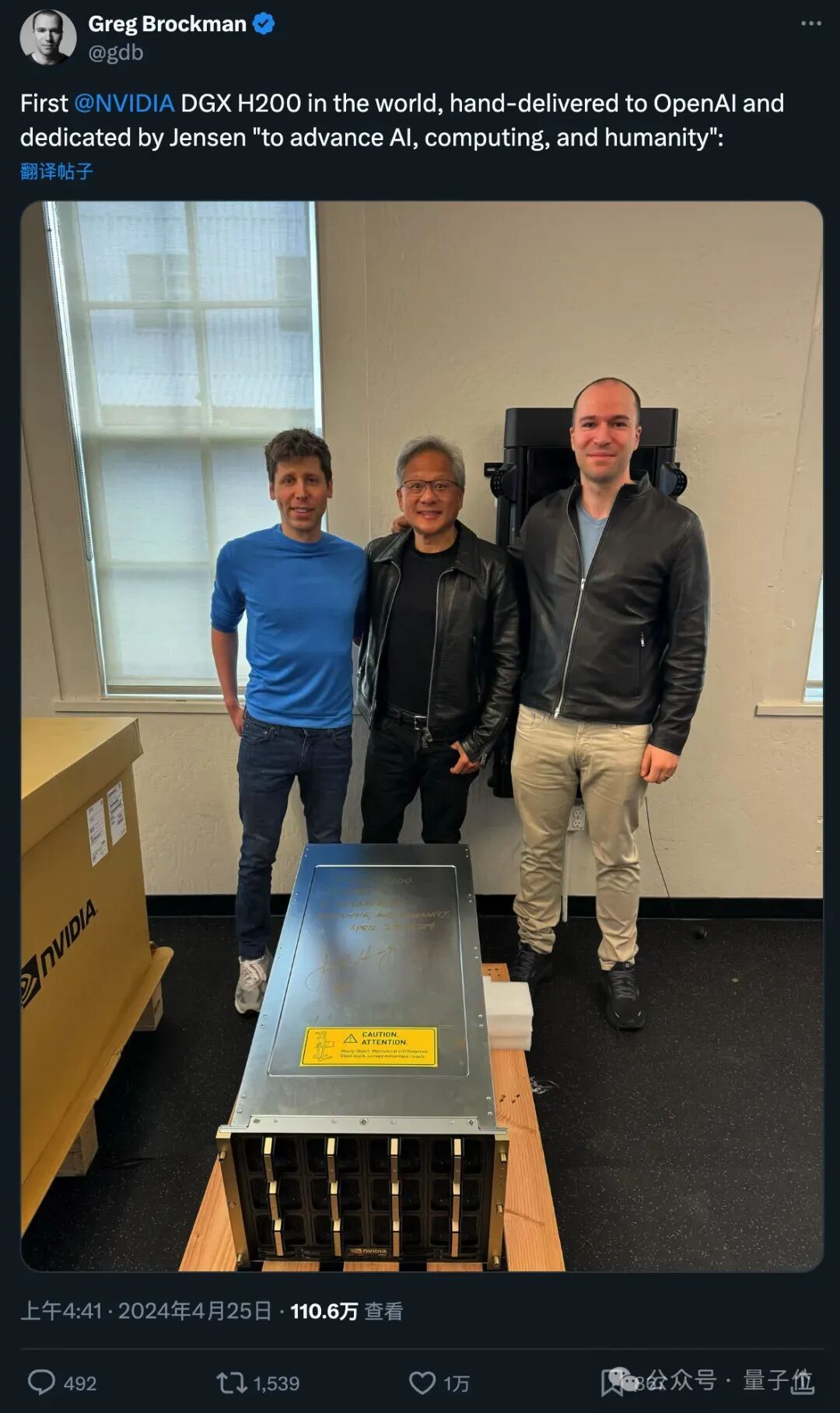 2016年,黄仁勋亲自将一台DGX-1超级计算机送到OpenAI旧金山办公室。当时OpenAI还只是一个小型非营利机构。