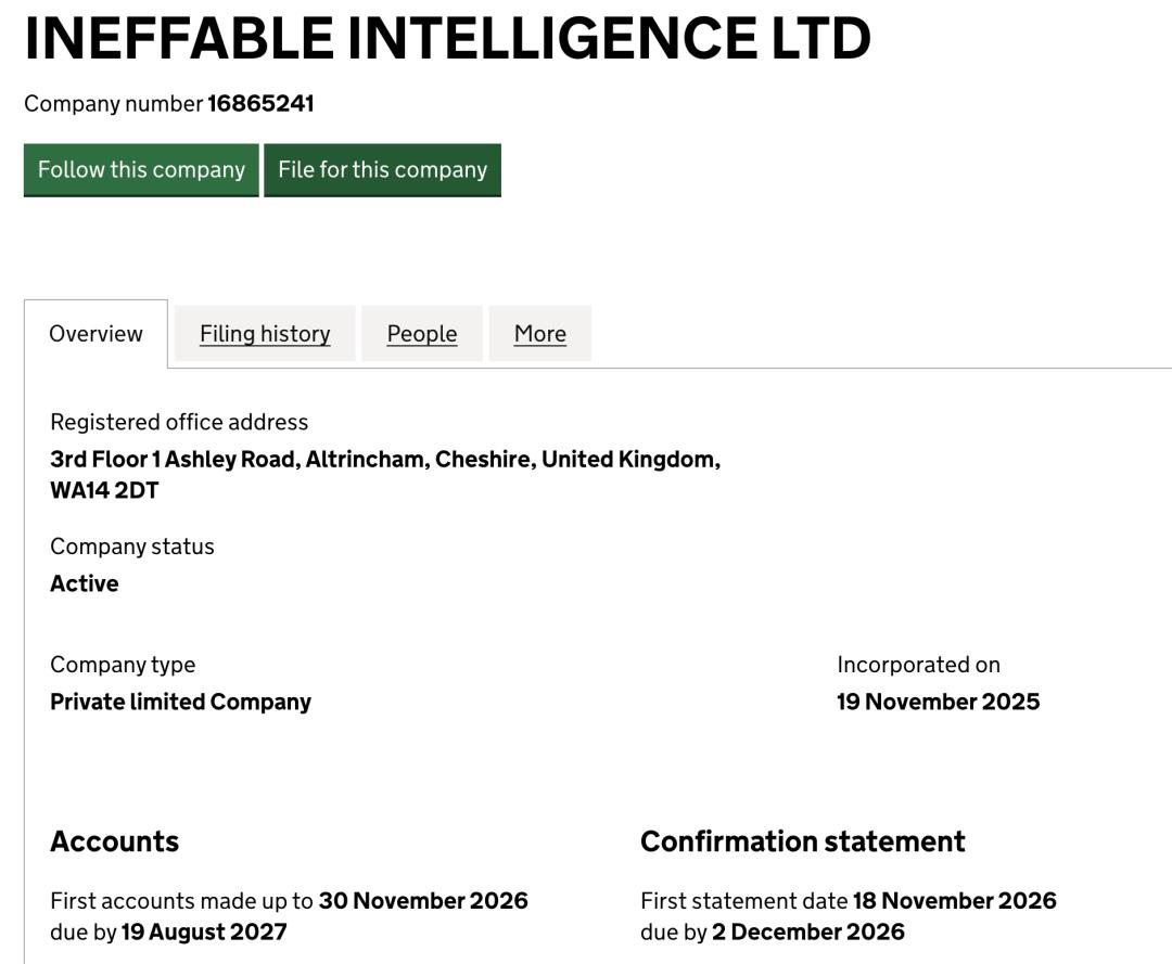 Ineffable Intelligence总部设在伦敦,目前正在积极招募AI研究人才并寻求风险投资。