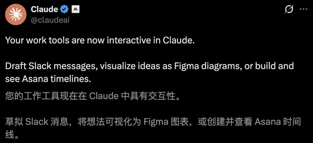目前,包括Slack、Figma、Asana在内,一共有十余款主流应用与Claude互联。