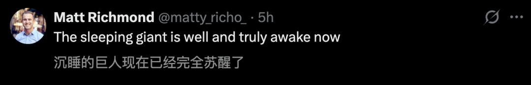 难怪网友们纷纷感慨:「沉睡的巨人,已完全苏醒」。