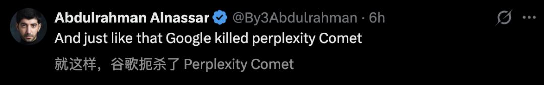 如今,当Gemini 3的顶级模型能力,遇上Chrome 38亿的庞大用户基数,再加上谷歌无孔不入的生态服务,这场浏览器之战似乎在开始前就已经结束了。