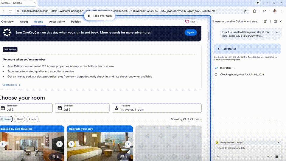 得益于Gemini 3强大的多模态理解能力,Chrome现在可以像人类一样「看懂」网页,并执行复杂的操作。