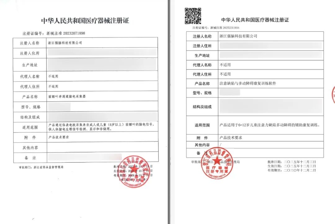金星明教授所分享的临床研究,正是基于强脑科技非侵入式脑机接口产品“专注欣”医疗版开展。产品采用更加轻便、易于佩戴的形态,相较于传统脑电设备布线复杂、电极数量多、操作门槛高的使用方式,可更快速、更便捷地完成脑电采集与训练。该产品包含注意缺陷与多动障碍康复训练软件和前额叶单通道脑电采集器,均已获得医疗器械注册证,实现了脑机接口ADHD干预领域软硬件全链条医疗器械认证,这标志着脑机接口技术在儿童神经康复领域从实验室研究走向规范化临床应用的重要突破,为ADHD儿童提供了循证医学支持的非药物干预新选择。