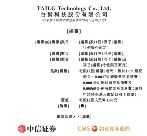 港交所网站显示,日前台铃科技股份有限公司向港交所提交上市申请书,联合保荐人为中信证券和招商证券国际。