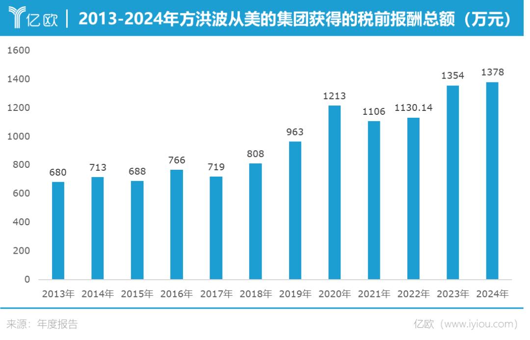 从自身来看,方洪波于2012年接替创始人何享健成为第二任董事长。在2013年至2024年间,方洪波从美的集团获得的税前报酬总额整体上呈现上升趋势,累计为1.15亿元。