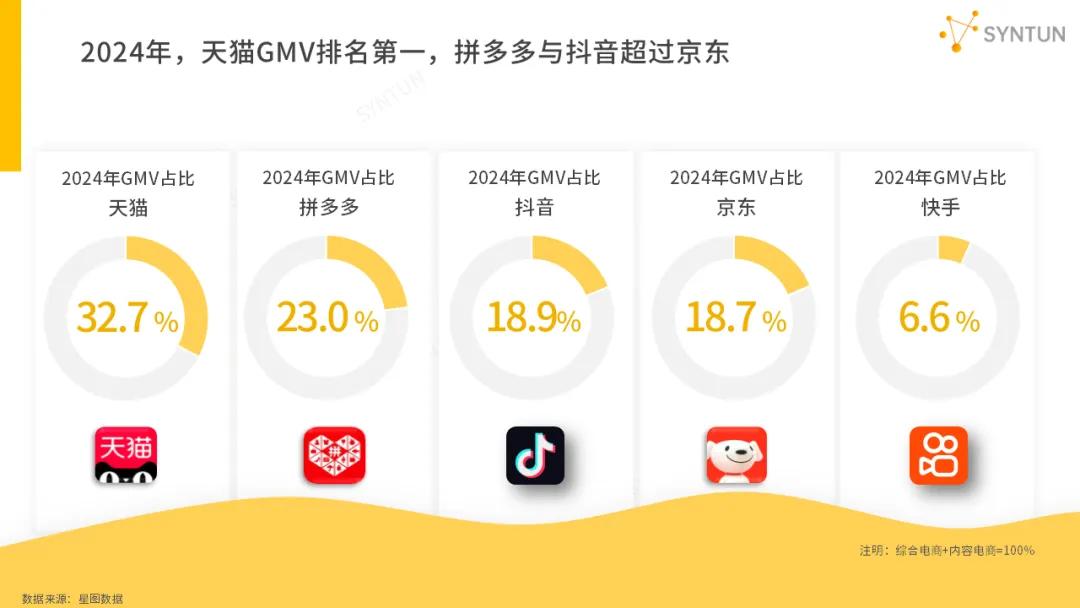 据星图数据发布的《2025年电商发展报告》,2024年,快手电商的GMV在国内电商市场中成功跻身行业前五,位列天猫、拼多多、抖音、京东之后。