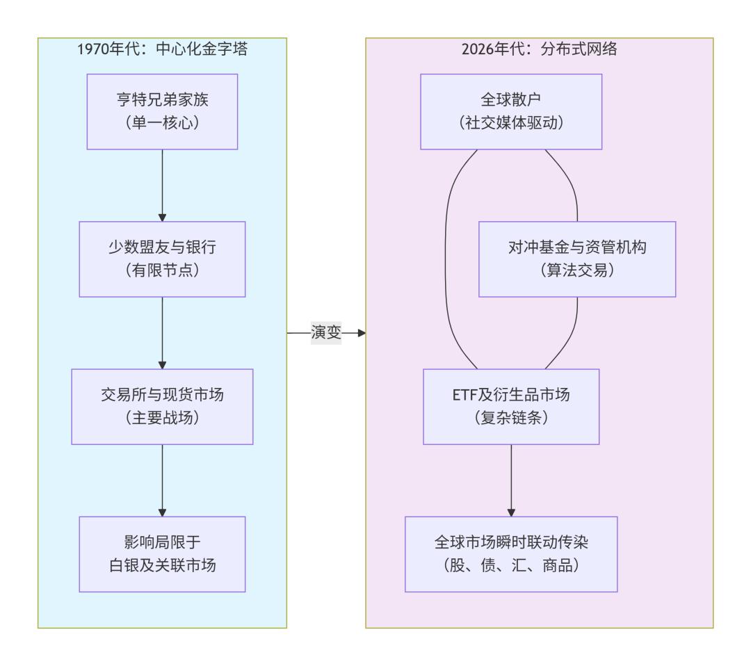 2026年的“白银幽灵”,已不再是亨特兄弟那个具体而微的巨鳄形象,而是一个无形、分散、具有全球即时传染性的系统现象。