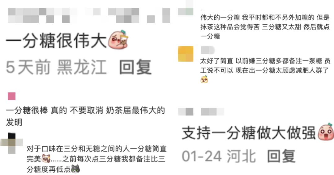 “当下,虽然1分糖的实际需求不是很大,但消费者觉得新奇、被尊重,社媒反响好,利于品牌口碑和差异化。”