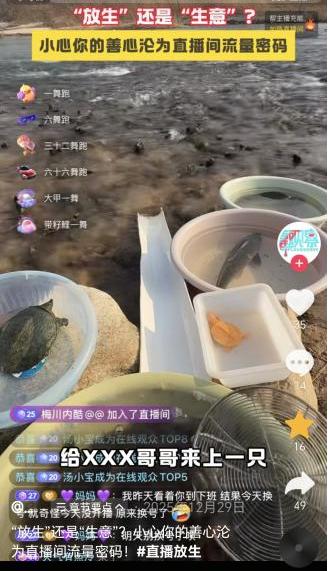 如此荒诞的一幕,给“放生”这个争议已久的话题,又添一笔素材。随着“电子木鱼”“赛博求签”等佛系梗流行,网友们齐心协力大开脑洞,在社交媒体上诠释着新的“放生”内涵——