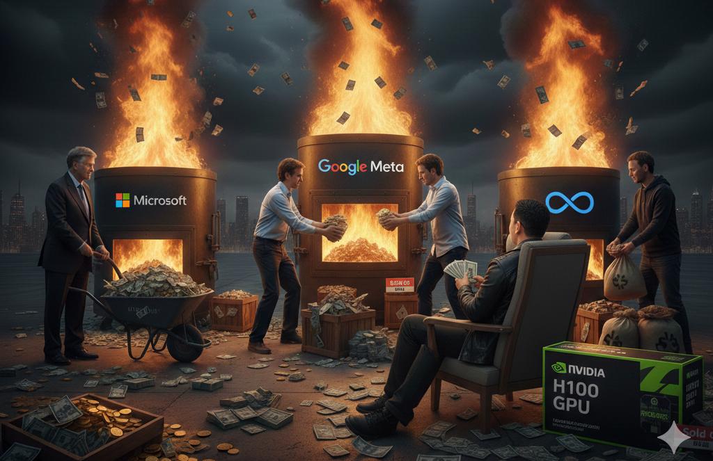 于是,我们看到了人类商业史上最疯狂的一幕:微软、谷歌、Meta,这些富可敌国的巨头,像着了魔一样,把几百亿几百亿的真金白银扔进火炉。