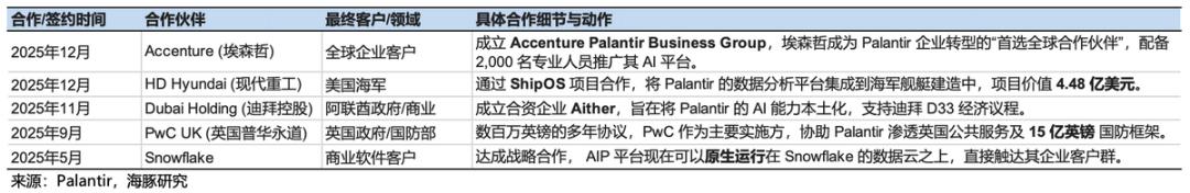 同样以合作共赢为主要驱动,Palantir与头部咨询公司合作,比如毕马威、埃森哲,通过模块形式插入整体方案中,同时享受他们的客户资源和渠道。