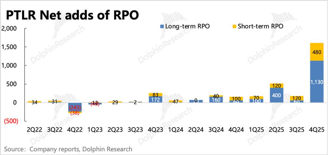 RPO表明上述剩余合同中已经明确锁单(无法取消)的金额,Q4增速飚至144%。由此说明,客户端正在加速锁定总价值更高的长期服务。